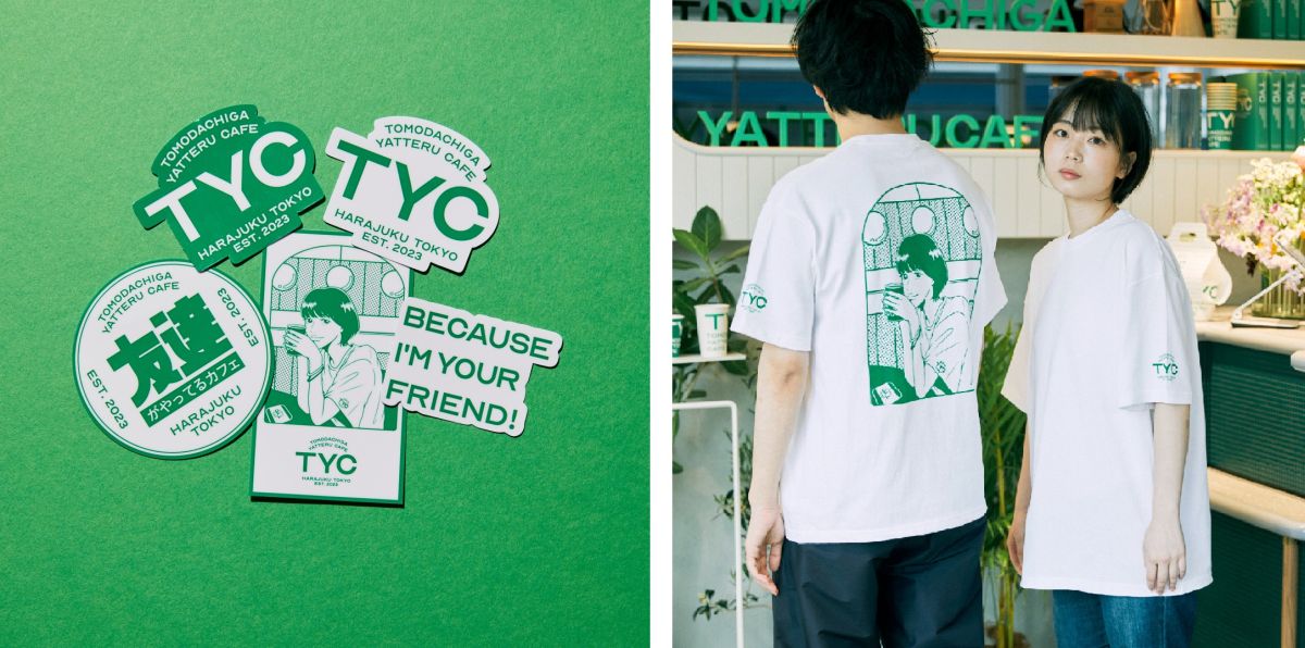 「友達がやってるカフェ」オリジナルグッズも店舗で販売中です!こちらも例にもれず商品名はそれぞれ「ステッカーってどんなのある?(ステッカー)」1枚300円/5枚セット1000円、「Tシャツのデザイン⾒せて欲しいんだけど(Tシャツ)」4000円と、コンセプトに忠実な仕様になっています。イラストはイラストレーターのますだみく氏が担当。通販でも購入でき、通販では“友達の手紙”が添えられます!